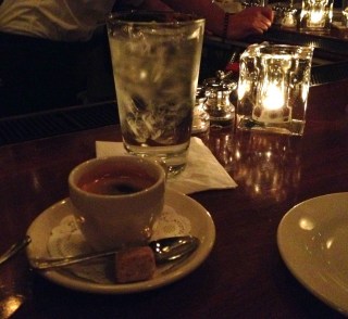 We had a very tight place at the bar, and ordered lattes and chocolate tortes.